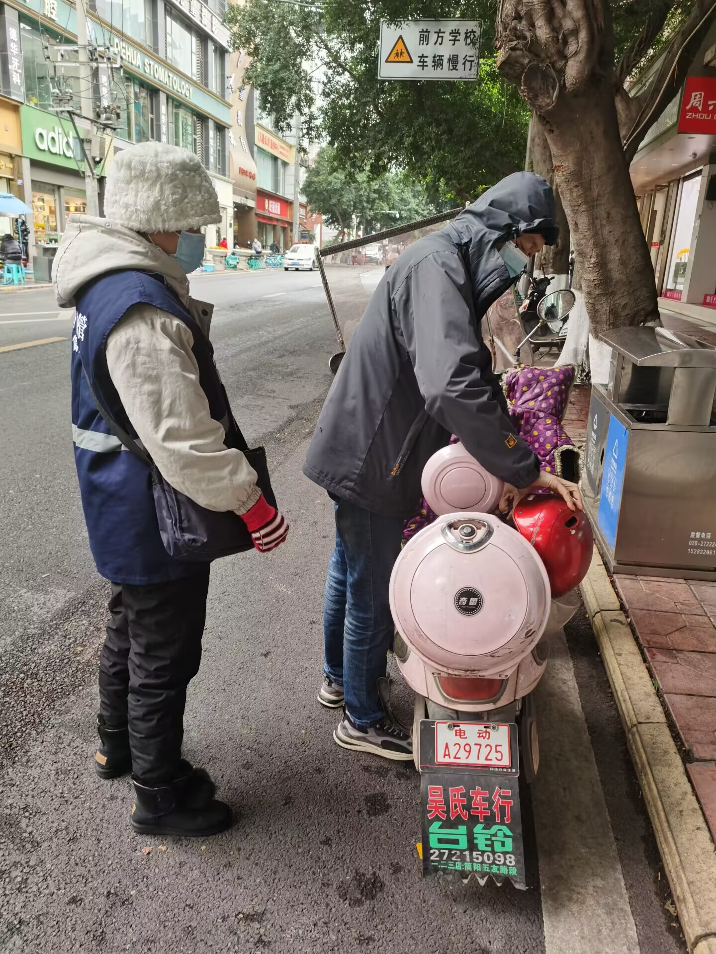 監督員利用工作之余,通過(guò)巡查區域“一對一”向市民朋友進(jìn)行文明勸導,著(zhù)重從文明出行、愛(ài)護公共衛生、參與文明社區建設、不文明行為處罰等與群眾生活息息相關(guān)的內容進(jìn)行宣傳,倡導大家遵守條例規定,安全騎行請佩戴頭盔、不闖紅燈、講文明話(huà)、干文明事、做文明人,為建設文明城市盡一份心、出一份力。