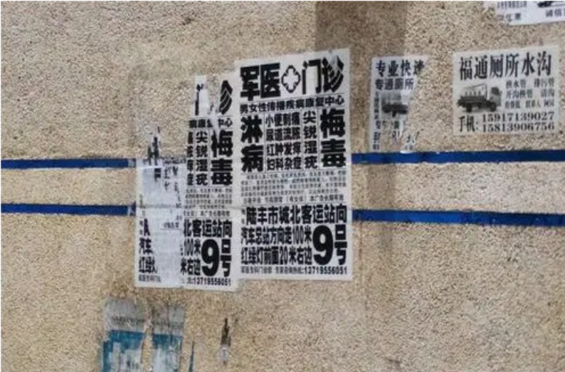 就是在城市公共場(chǎng)所、建筑物外立面等地隨意張貼、涂寫(xiě)的小廣告。