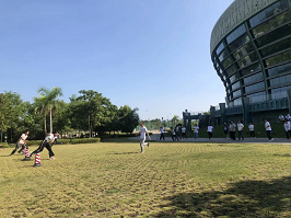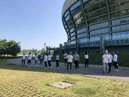 第二個(gè)活動(dòng)項目是“團隊接力跑”,要求每個(gè)小組完成一次全員擊掌接力跑。